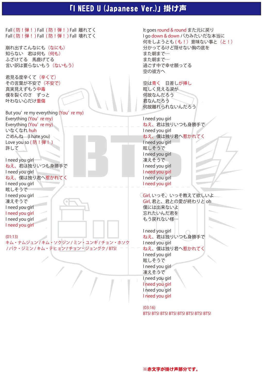「I NEED U (Japanese Ver.)」の応援方法(掛け声)