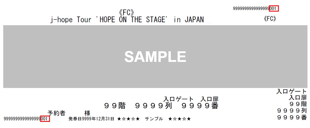 ★チケット券面のお名前の印字の下に、『001』または『002』の表記がございます。