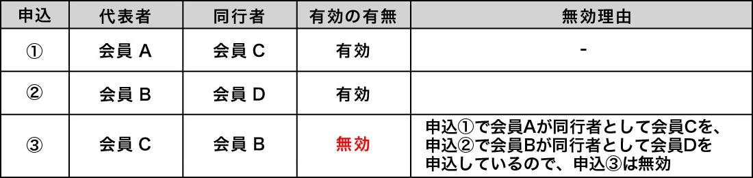 ※同行者の方も応募対象の会員でないと、お申込みいただいても落選対象となりますので、必ずお申込み前に同行者の方の会員期限をご確認ください。