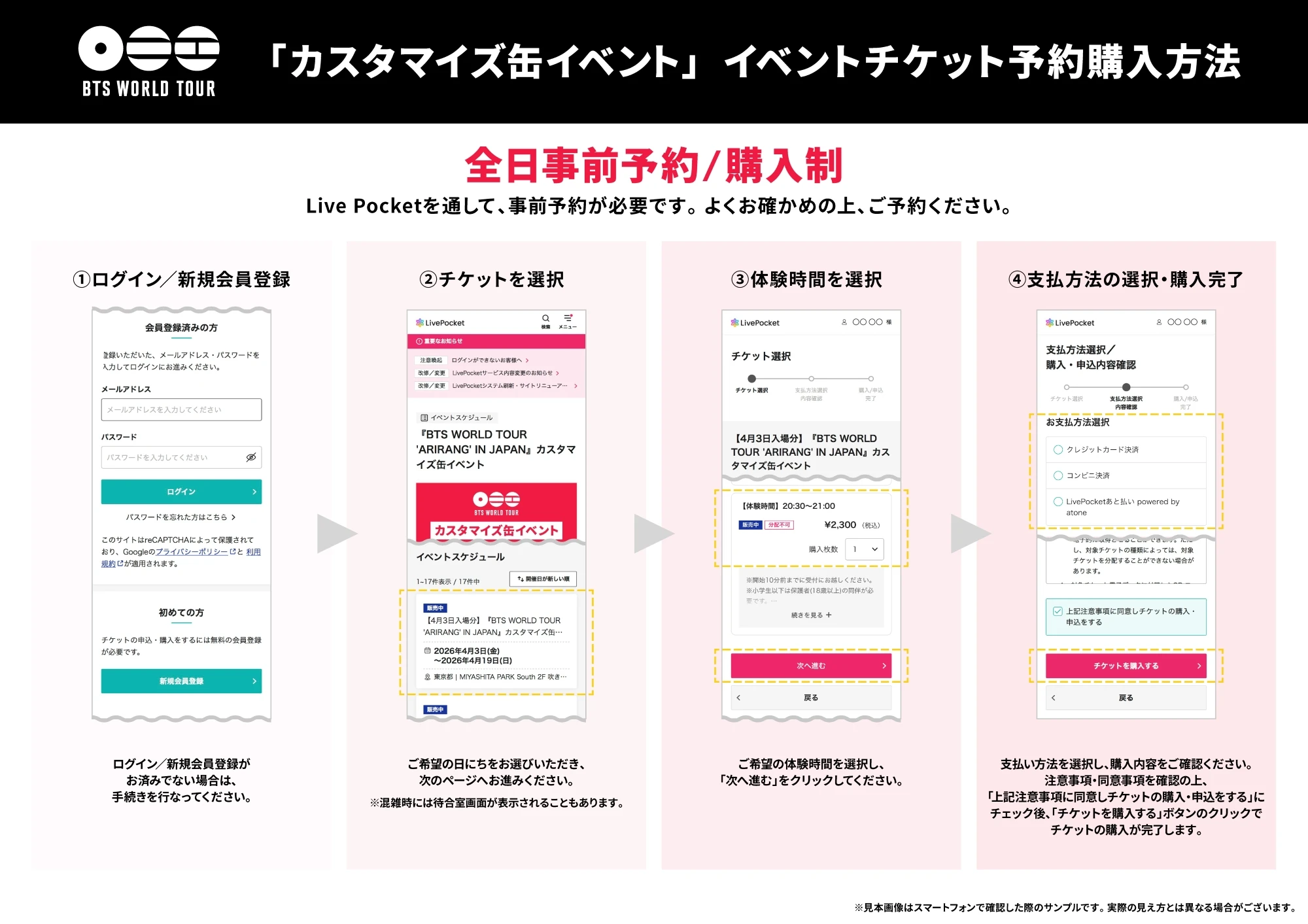 ※「カスタマイズ缶セット」分の代金のみ、事前予約時に決済が必要になります。あらかじめご了承ください。
