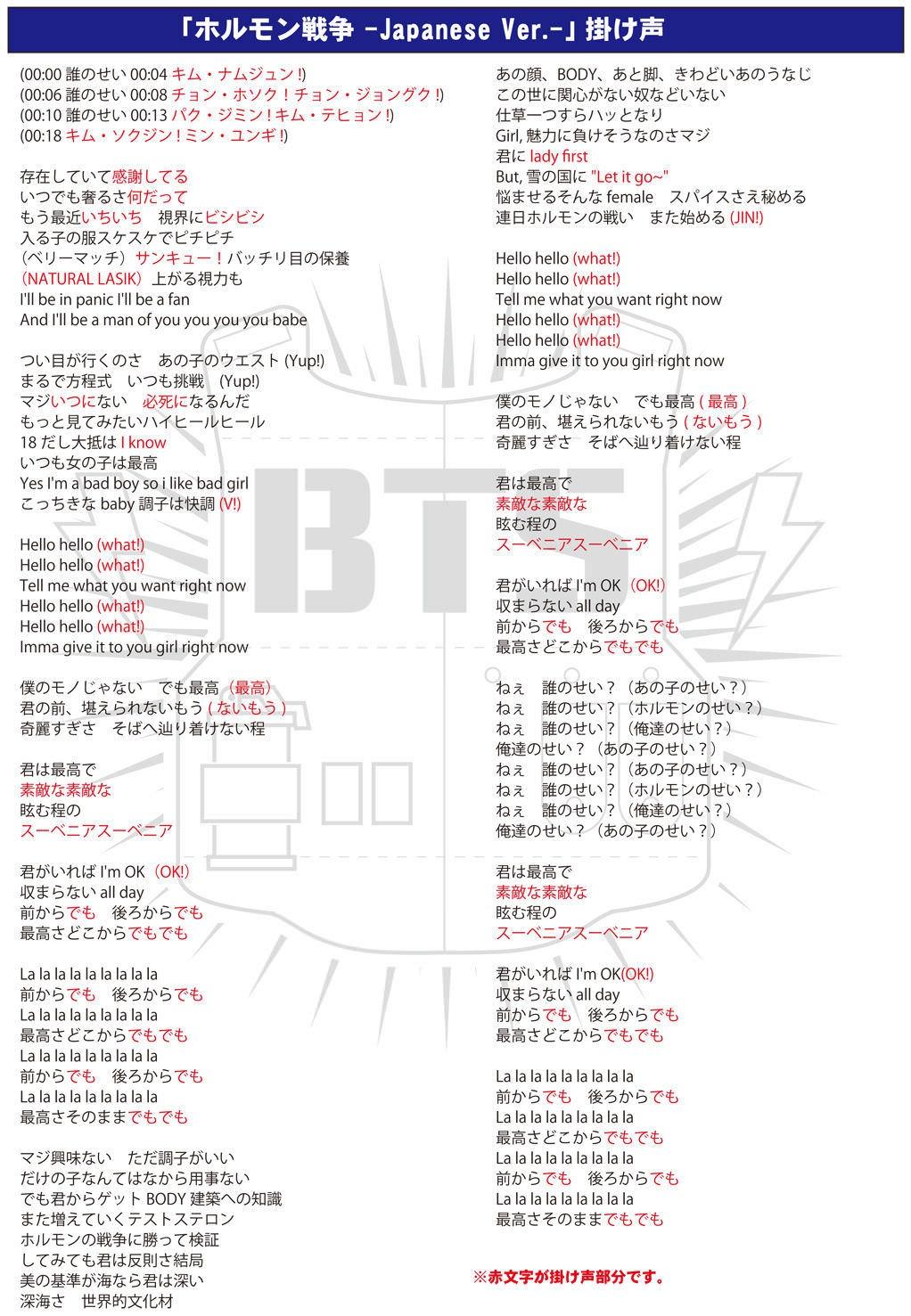 「ホルモン戦争 -Japanese Ver.-」の応援方法(掛け声)